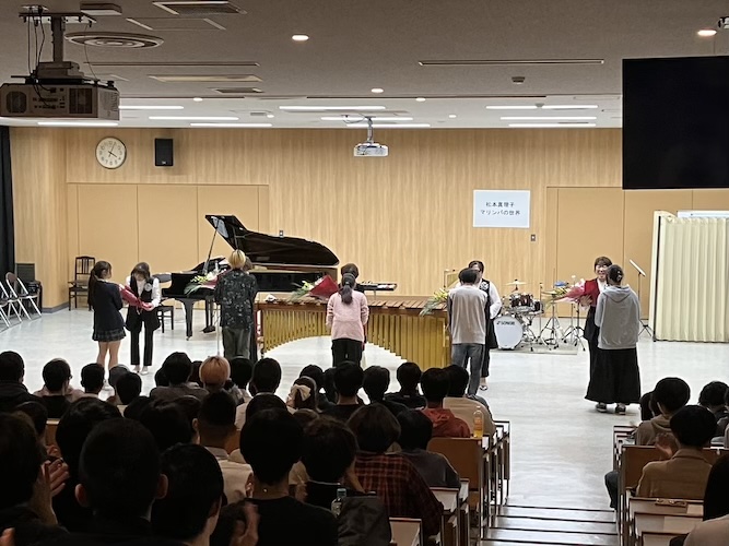 令和7年10月30日(木)、大視聴覚室において、関西打楽器協会副理事長・松本真理子氏をお招きし、特別講演会「松本真理子マリンバの世界」を開催しました。